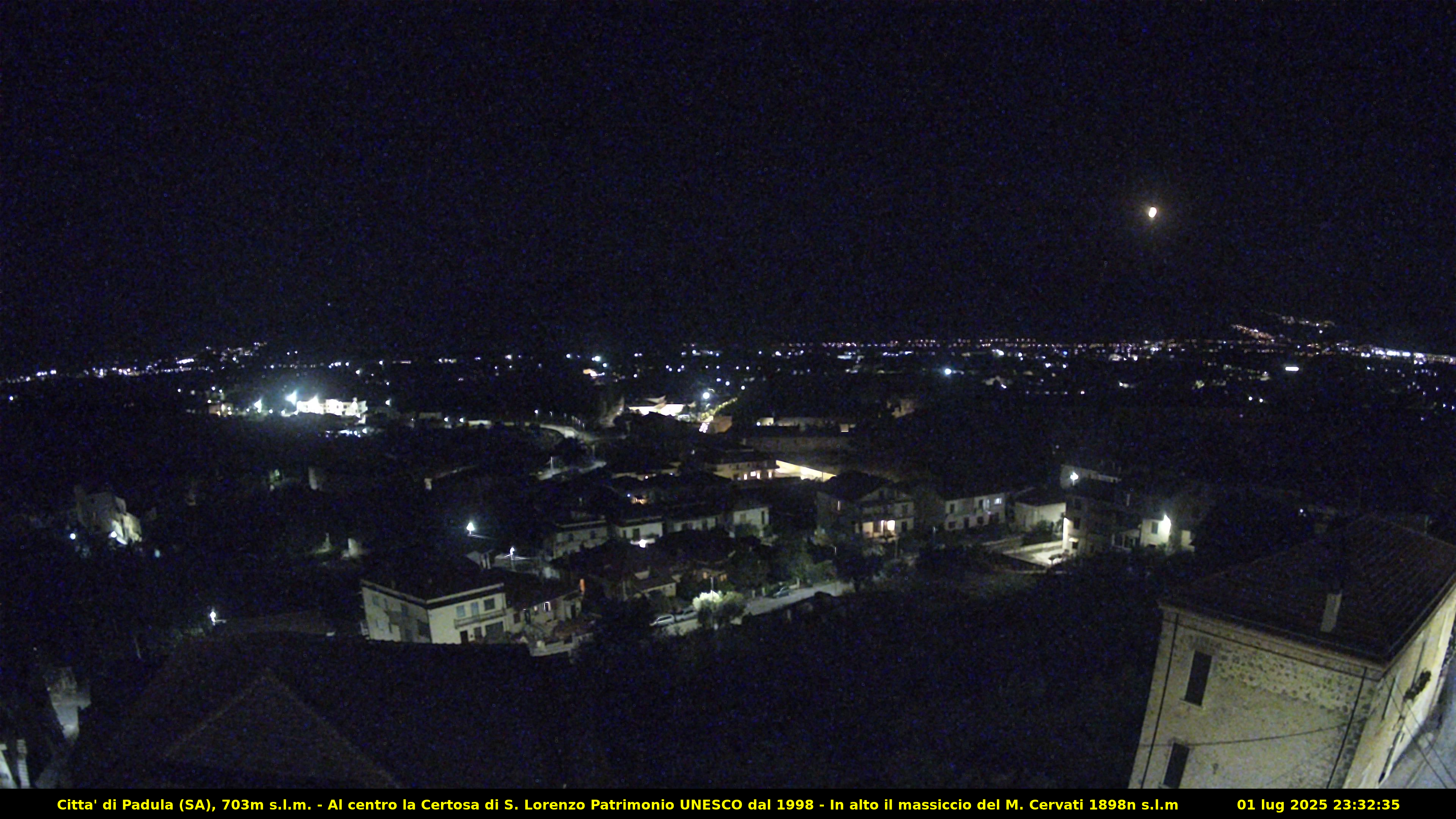 Webcam a Padula, è un Comune della provincia di Salerno, è famosa per la Certosa di S. Lorenzo, patrimonio dell’UNESCO. Si trova nella Valle di Diano.